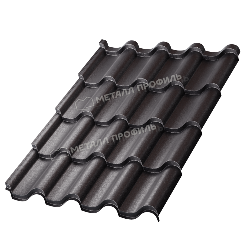 Профиль имитирует форму традиционной керамической черепицы с плавными волнами и четкими гранями. Высота волны оптимальна для эффективного отвода воды и снега, минимизируя нагрузку на конструкцию. Ширина листа позволяет экономить материал при монтаже, а симметричная форма упрощает стыковку элементов. Профиль адаптирован для различных уклонов крыш, от пологих до крутых, обеспечивая герметичность и эстетичность. Благодаря точной геометрии, он устойчив к деформациям под ветровыми нагрузками и сохраняет форму даже при значительных осадках.